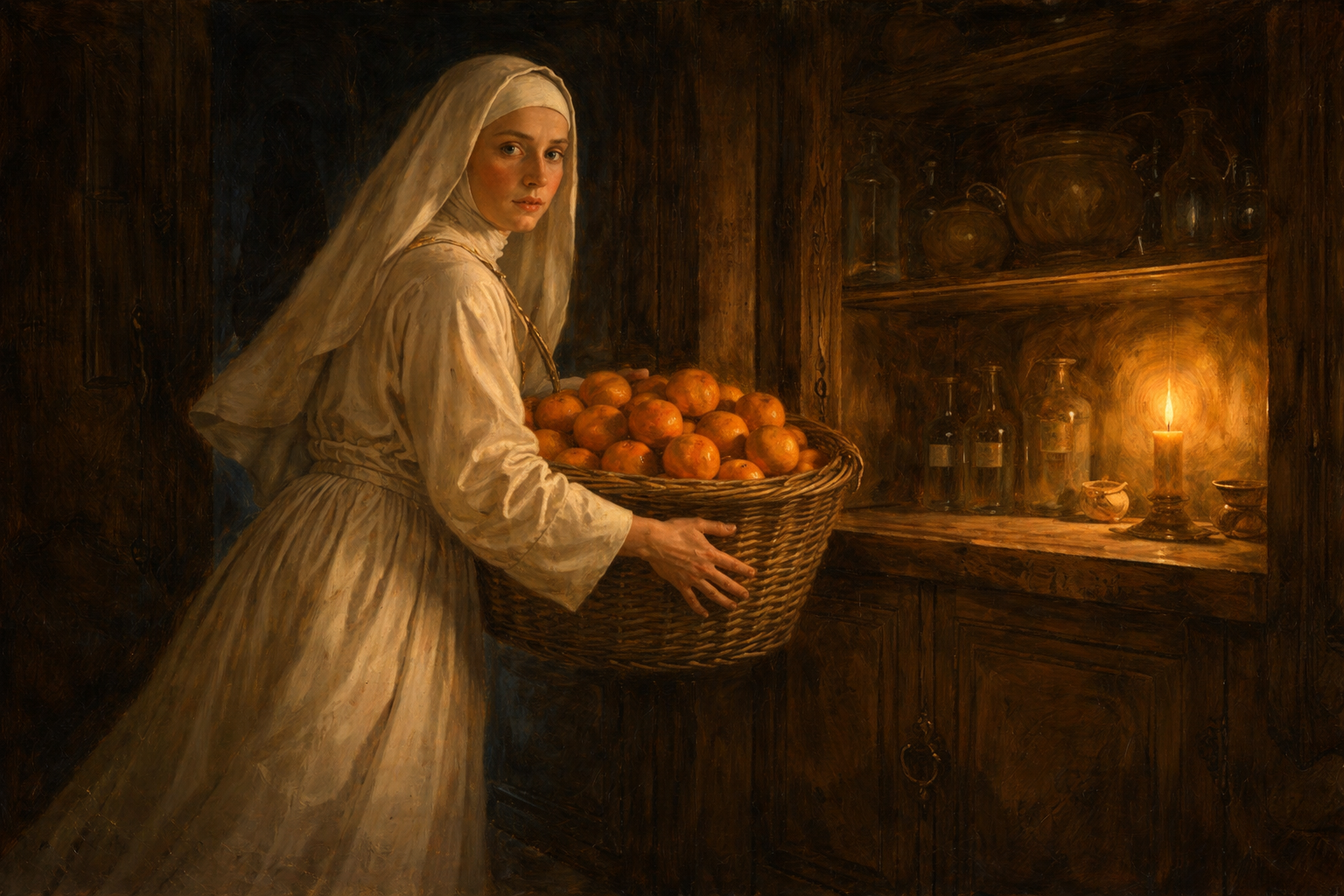 Aquella mañana de mayo, con un calor más alto del acostumbrado para la fecha, la chica cerró el libro que estaba leyendo y se dispuso a alcanzar el claustro a fin de recoger algunas de las naranjas que colgaban de los árboles frutales. Las monjas de clausura se preocupaban mucho por cuidar de sí mismas y por aprovisionarse con sus propios recursos de todos los alimentos que la madre naturaleza podía proporcionarles.