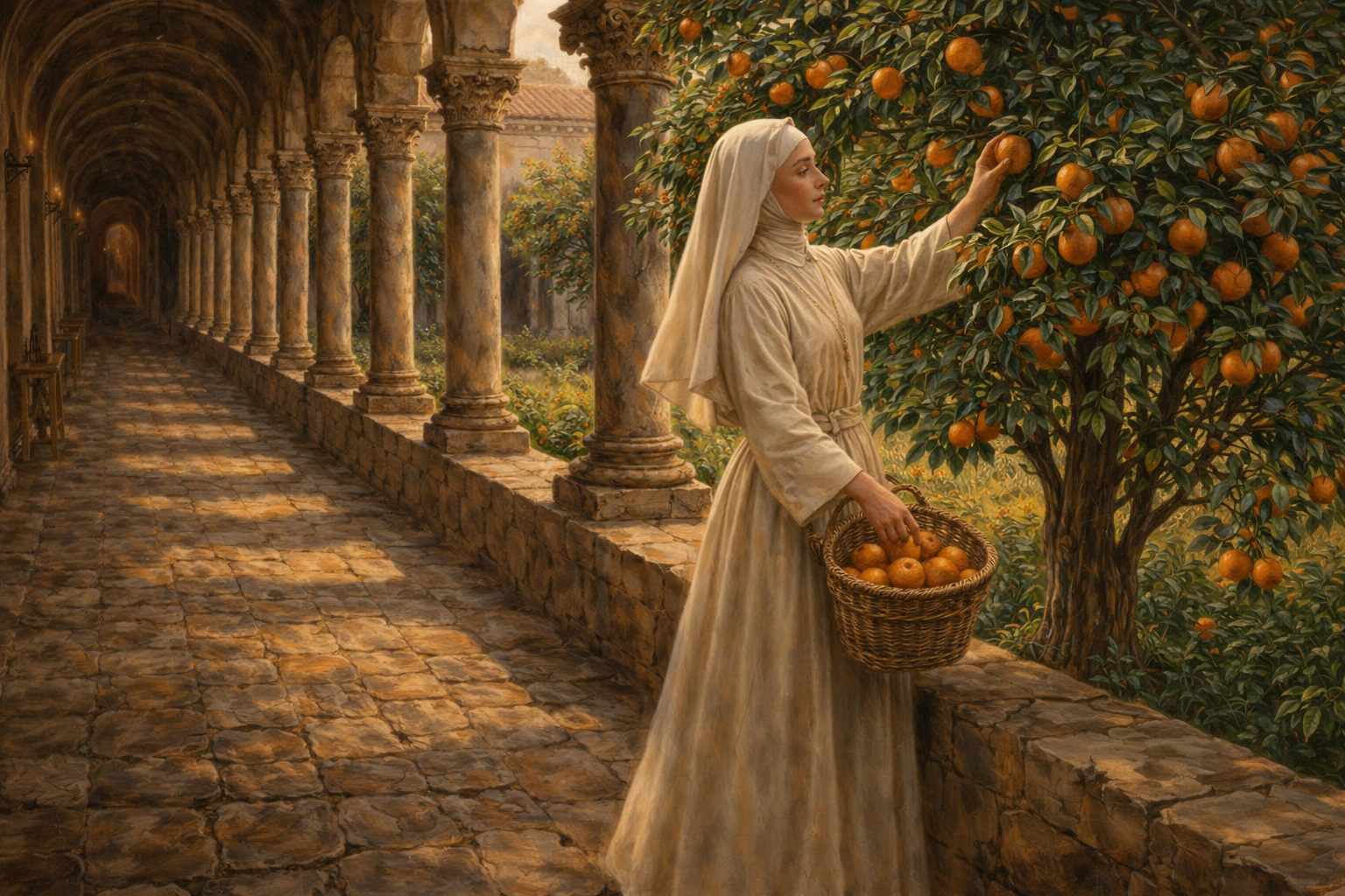 Tras salir las monjas y alcanzar el patio del claustro, la superiora se detuvo en el centro, mirándolas una a una con gravedad.